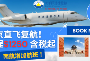 南航:增加多伦多直飞广州至每周四个航班,2024年11月17日开始